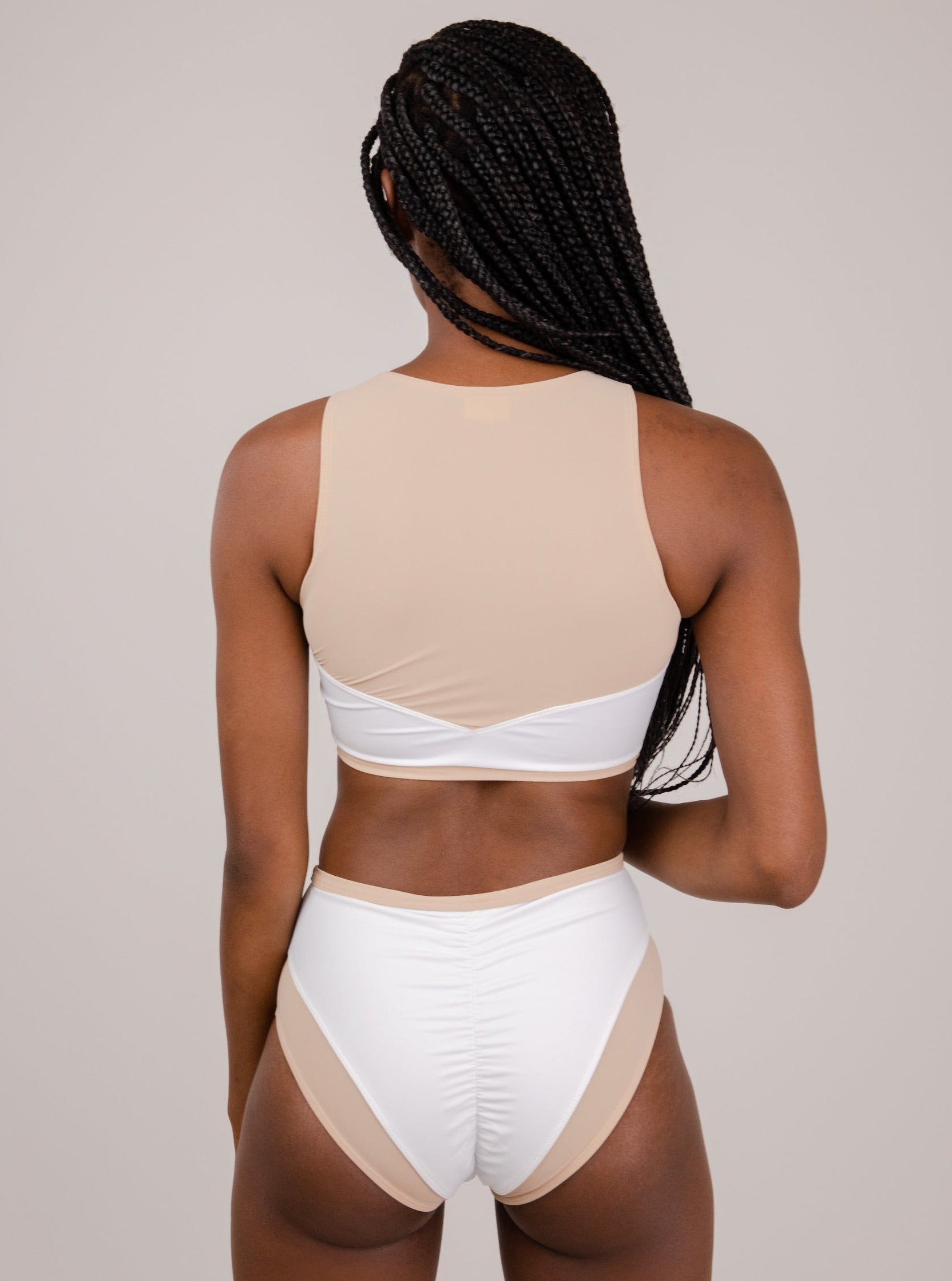 The Nude material is also Econyl, but a thinner one, making it slightly translucent.